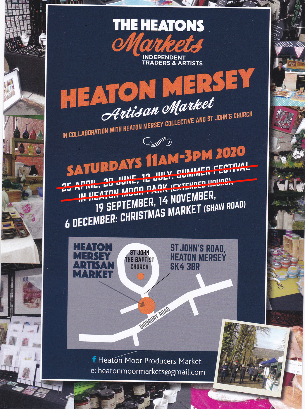 The first three Heaton Mersey Artisan Markets of 2020 were cancelled, owing to the current pandemic. The next one is planned for Saturday, 14 November, on St John’s Road.